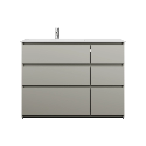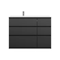 • 1 x Mineralguss-Waschtisch inklusive Waschtischunterschrank linksbündig