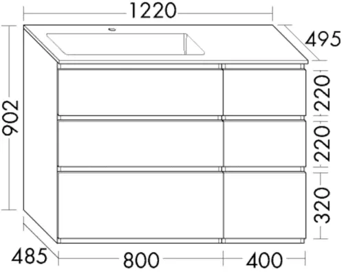 • Maße Unterschrank B/T/H = 1200 mm x 485 mm x 902 mm
