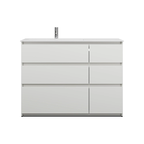 burgbad Lin20 Mineralguss-Waschtisch Weiß Glänzend linksbündig inklusive Waschtischunterschrank, 6 Auszüge 2 verschiedene Größen, 1220x495x902mm