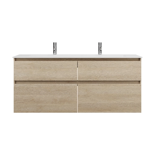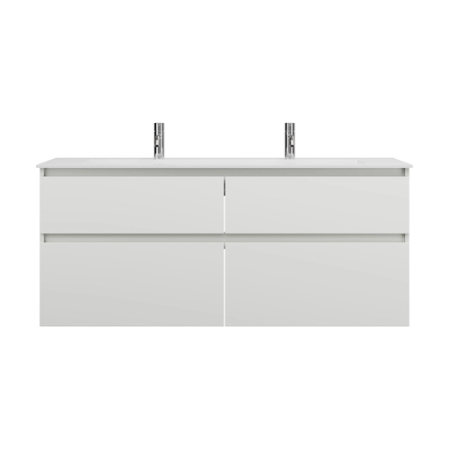 burgbad Lin20 Mineralguss-Waschtisch Weiß Glänzend mit 2 Armaturbohrungen inklusive Waschtischunterschrank, 4 Auszüge parallel, 1420x495x612mm