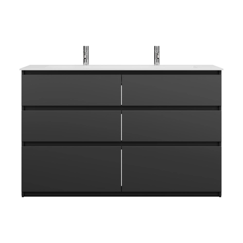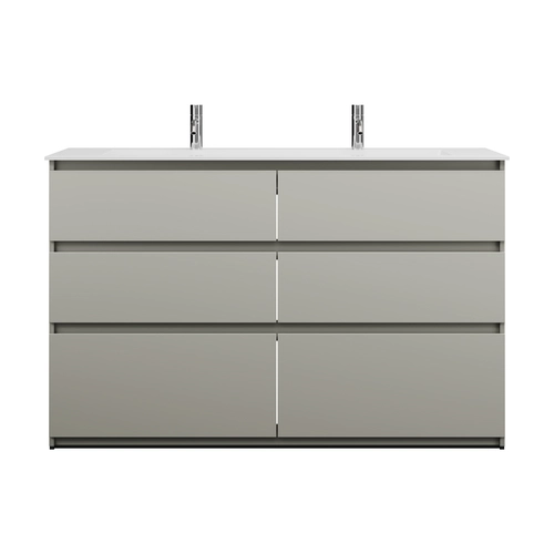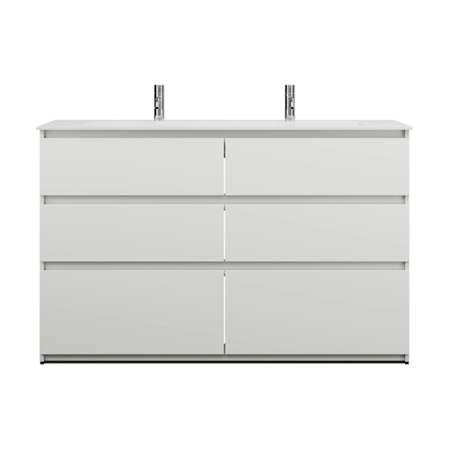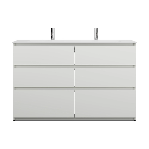 burgbad Lin20 Mineralguss-Waschtisch Weiß Glänzend mit 2 Armaturbohrungen inklusive Waschtischunterschrank, 6 Auszüge parallel, 1420x495x902mm