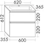 • Maße Unterschrank B/T/H = 600 mm x 355 mm x 612 mm