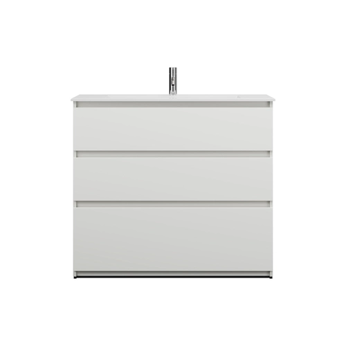 burgbad Lin20 Mineralguss-Waschtisch Weiß Matt inklusive Waschtischunterschrank, 3 Auszüge, 1020x415x902mm