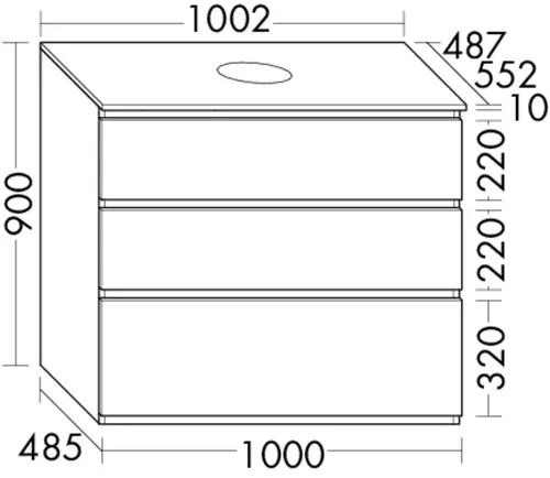 - 1 Auzug oben 220 mm hoch mit Siphonausschnitt und Inneneinteilung
