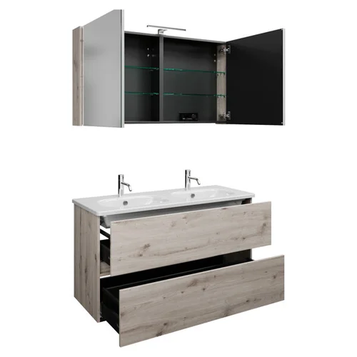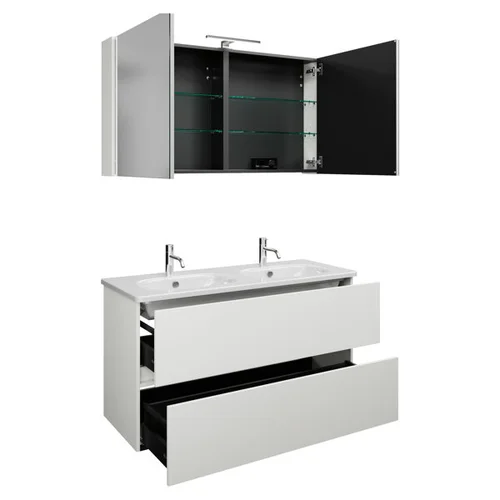 burgbad Rocio set comprising mirror cabinet with LED light, double washbasin and vanity unit, width 1200mm