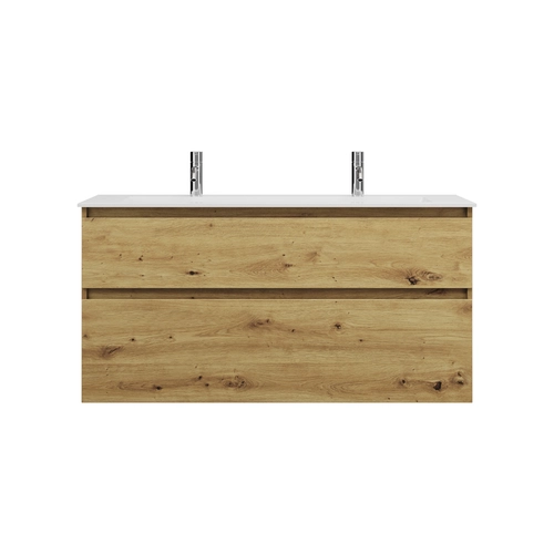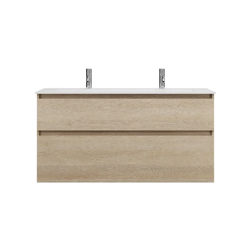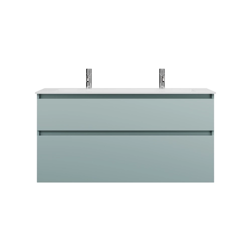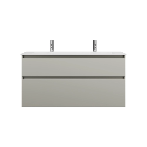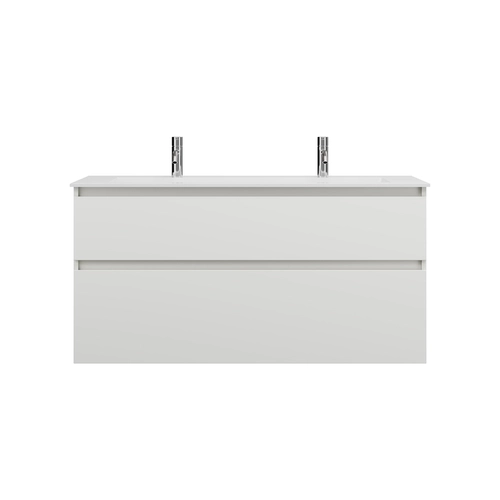 burgbad Lin20 Mineralguss-Waschtisch Weiß Matt mit 2 Armaturbohrungen inklusive Waschtischunterschrank, 2 Auszüge, 1220x495x612mm