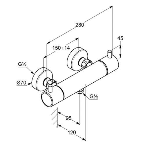 KLUDI BOZZ Thermostat-Brausearmatur, Wandmontage, Temperaturwahlgriff