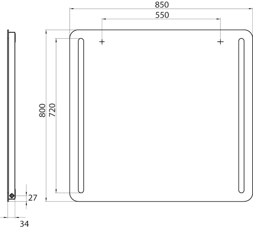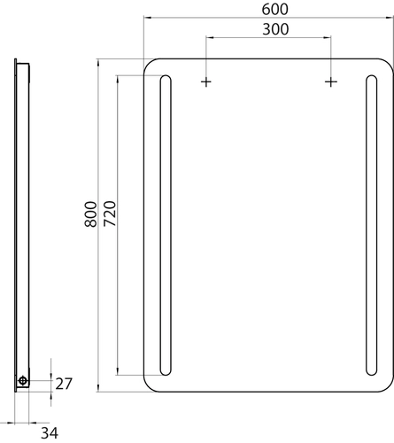 - 1 x LED-Lichtspiegel mit abgerundeten Ecken und zwei Lichtstreifen links und rechts