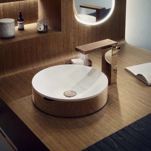 hansgrohe AXOR Suite Aufsatzwaschtisch, rund, D 400mm, mit Metallrahmen, ohne Überlauf, SOLIDSurface