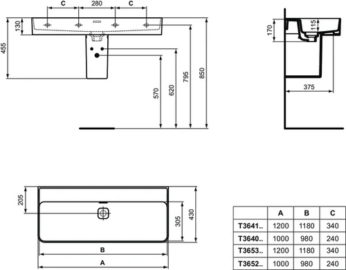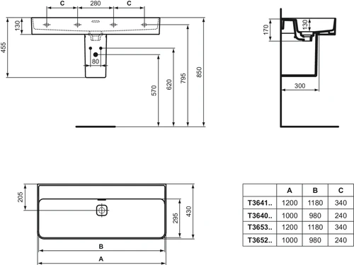 - Außenmaße B x T x H: 1000 x 430 x 170 mm