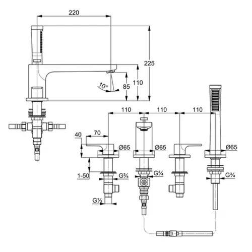 - 1 x Wannenfüll- und Brause-Einhandmischer