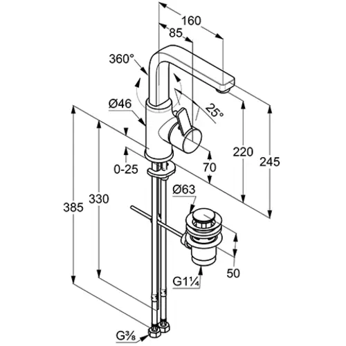 - Auslaufhöhe Unterkante 220 mm