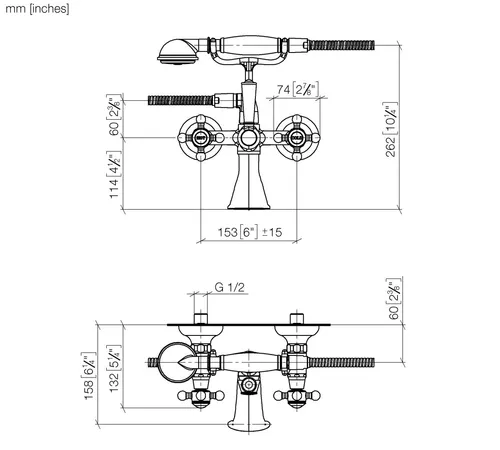 Dornbracht MADISON Wannenbatterie für Wandmontage, mit Handbrause, Ausladung 160mm