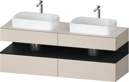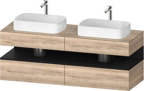 Duravit Qatego Konsolenwaschtischunterbau, 2 Auszüge, 2 Schubkästen, 2 Ausschnitte, 1600x550x600mm, Nische Eiche Schwarz