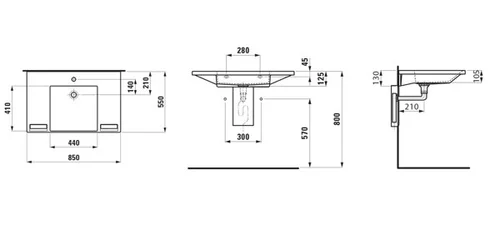 LAUFEN Liberty Line Waschtisch, barrierefrei, aus Marbond, 1 Hahnloch, ohne Überlauf, 850x550mm