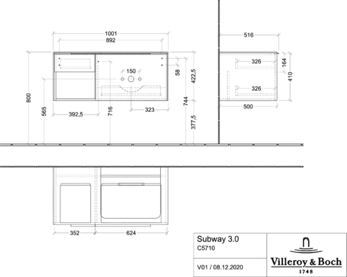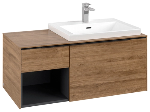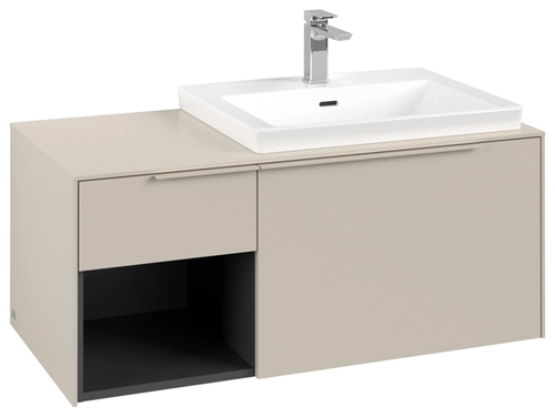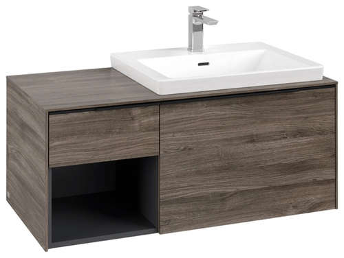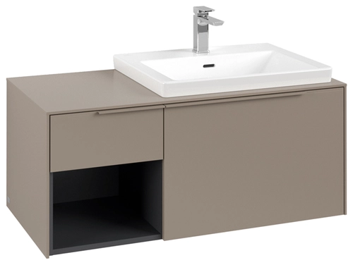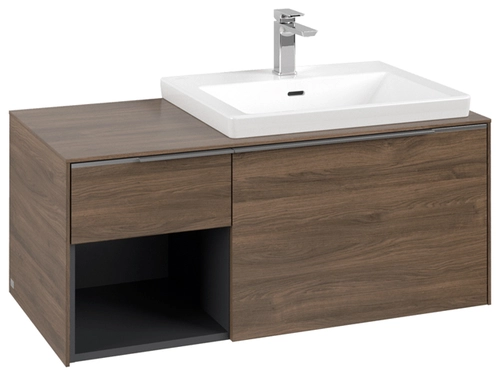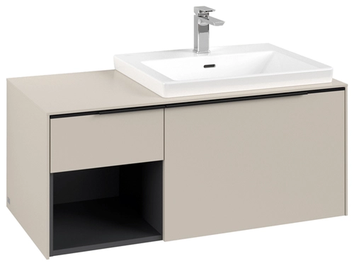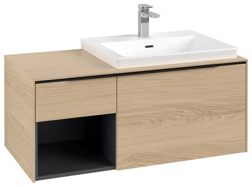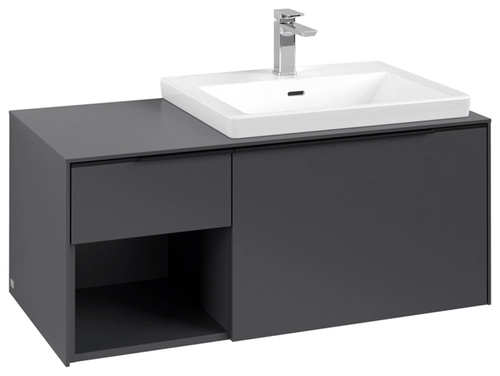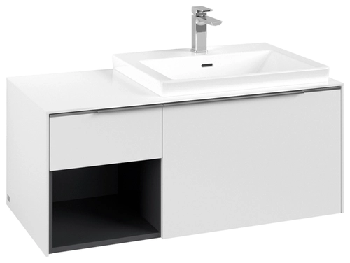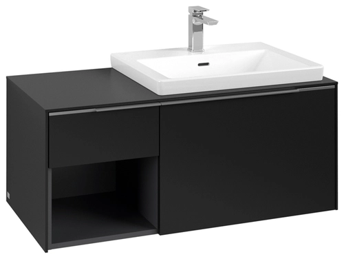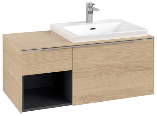 Villeroy & Boch Subway 3.0 Waschbeckenunterschrank, 2 Auszüge, Waschbecken rechts, Regalelement unten links, 1001x422,5x516mm