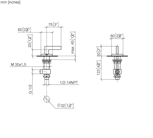 Válvula lateral Dornbracht CL.1, cierre a la izquierda, caliente, diámetro interior 32mm