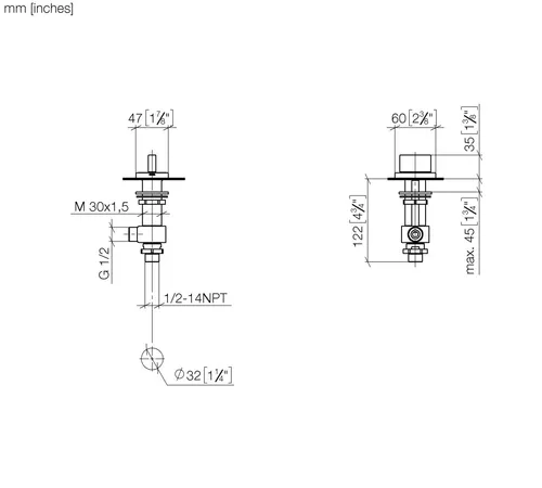 Dornbracht CL.1 Seitenventil, rechtsschließend, kalt 1/2
