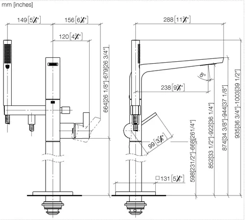 - Höhe bis Luftsprudler 852 - 922 mm