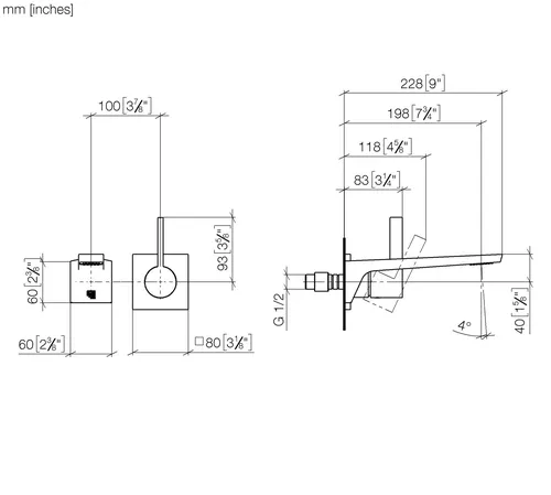 Dornbracht CL.1 Waschtisch-Wand-Einhandbatterie ohne Ablaufgarnitur, Ausladung 198mm