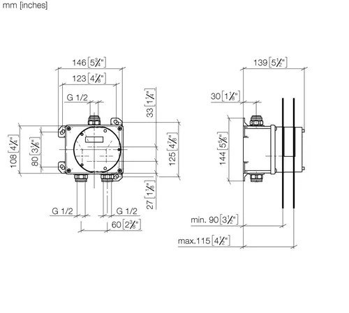 - Min. Einbautiefe 90 mm, Max. Einbautiefe 125 mm
