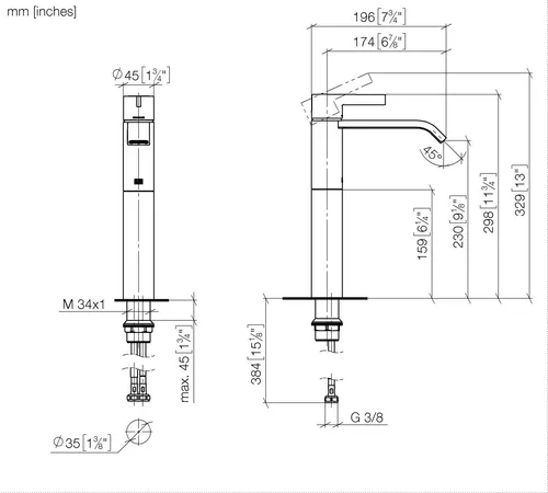 Dornbracht IMO Waschtisch-Einhandbatterie mit erhöhtem Standfuß, ohne Ablaufgarnitur, Ausladung 170mm
