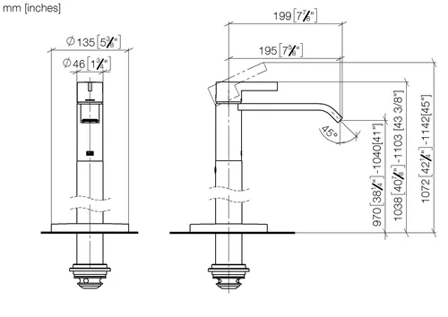 - Höhe bis Luftsprudler 970 - 1040 mm