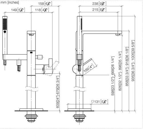 Dornbracht LULU Wannen-Einhandbatterie mit Standrohr für freistehende Montage, mit Schlauchbrausegarnitur