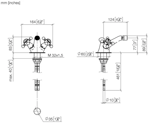 Dornbracht MADISON Bidet-Einlochbatterie mit Ablaufgarnitur, Ausladung 125mm