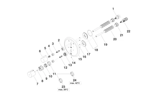 - Skalengriff mit Sicherheitssperre bei 38°C