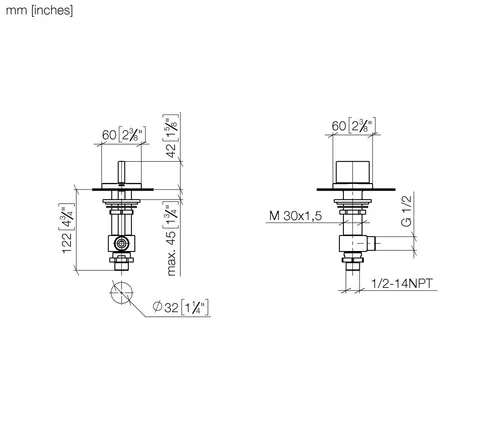 Dornbracht MEM zijkraan, rechts sluitend, koud, met hamerslag structuur