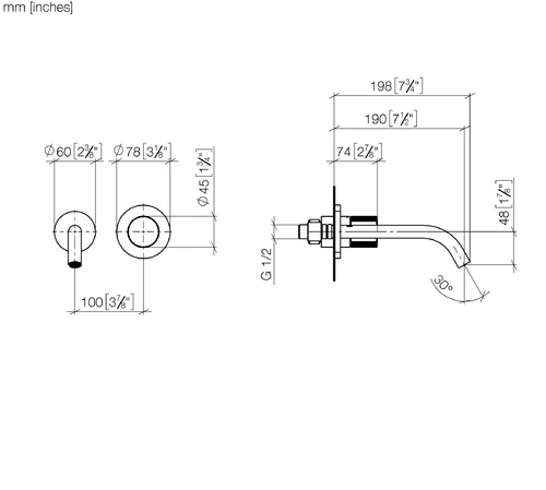 Dornbracht META Waschtisch-Wand-Einhandbatterie ohne Ablaufgarnitur, Ausladung 190mm, starrer Auslauf