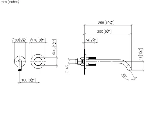 Dornbracht META PURE Waschtisch-Wand-Einhandbatterie ohne Ablaufgarnitur, Ausladung 250mm, starrer Auslauf