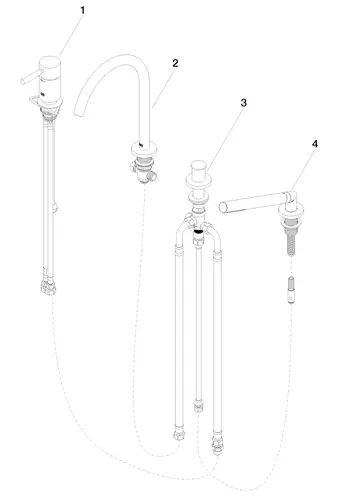 - 1 x Wannen-Vierlochbatterie für Wannenrand- bzw. Fliesenrandmontage