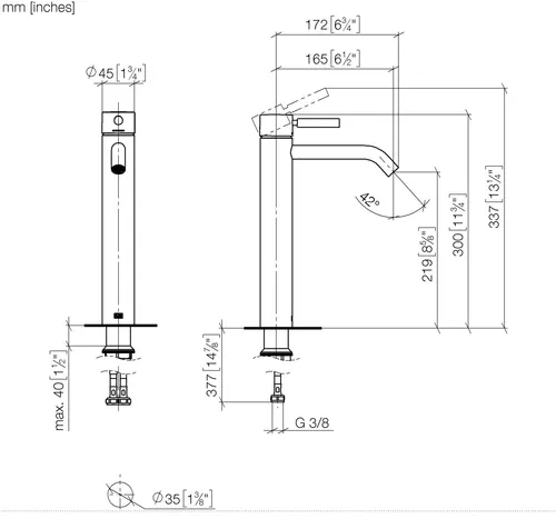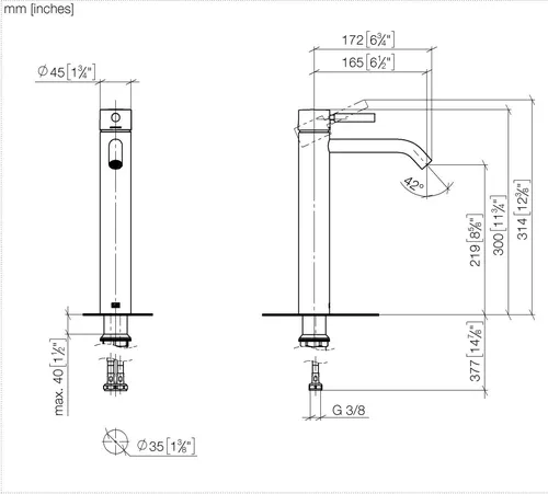 Dornbracht META Waschtisch-Einhandbatterie mit erhöhtem Standfuß, ohne Ablaufgarnitur, Ausladung 165mm