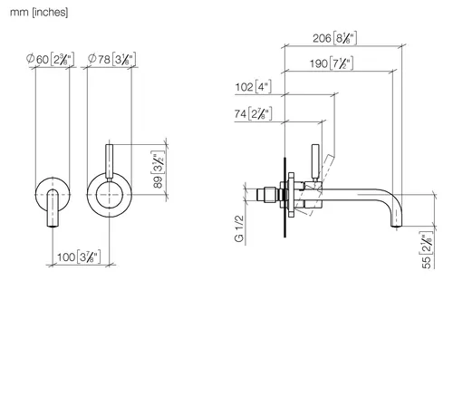- 1 x Waschtisch-Wand-Einhandbatterie