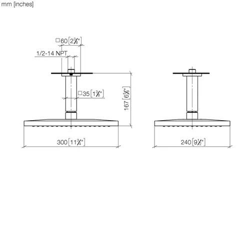 Dornbracht regendouche met plafondaansluiting, regendouche 300x240mm, FlowReduce, debiet 12 l/min