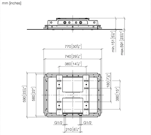 - Max. Max. inbouwdiepte 590 mm