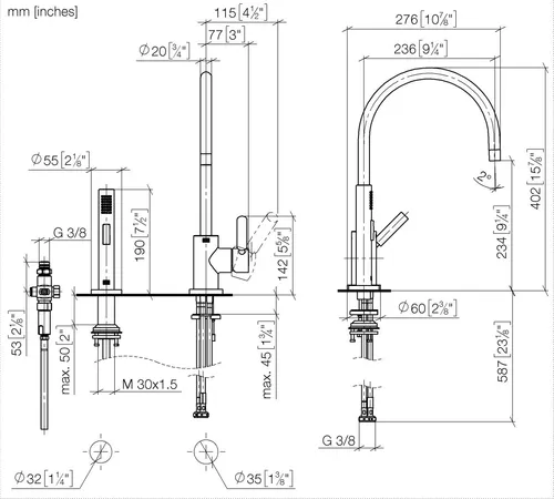 Dornbracht TARA single lever mixer for sinks/professional shower, 235mm projection