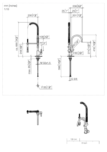 Dornbracht TARA Mezclador monomando Profi, caño giratorio 360°, proyección 200mm