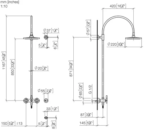 - Höhe Armatur bis Oberkante Bogen 1167 mm