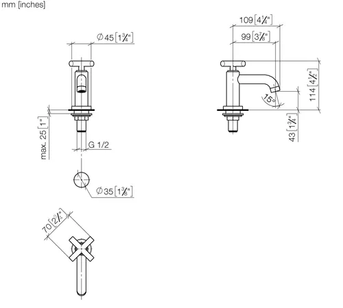 Der Dornbracht Wasserhahn ist nur für Kaltwasser geeignet. Er hat eine Ausladung von 100 mm und ein passender Luftsprudler ist im Lieferumfang enthalten. Die einfachen und prägnanten Attribute haben diese Tara Dornbracht Armatur zu einer Ikone gemacht.