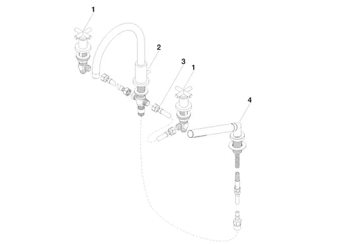 - 1 x Wannen-Vierlochbatterie für Wannenrand- bzw. Fliesenrandmontage