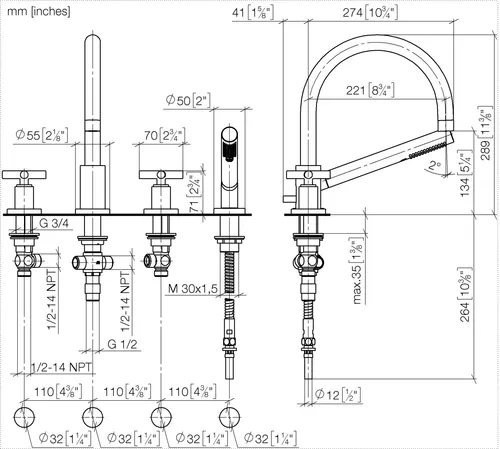 - Armaturenhöhe 290 mm