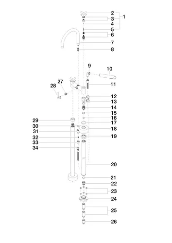 - 1 x tweegats badmengkraan voor vrijstaande montage met handdoucheset