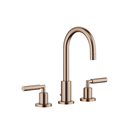 Dornbracht TARA Waschtisch-Dreilochbatterie mit Ablaufgarnitur, schwenkbarer Auslauf 360°, Ausladung 135mm