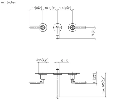 Dornbracht TARA wastafels zonder afvoergarnituur, uitbouw 160mm, set voor eindmontage