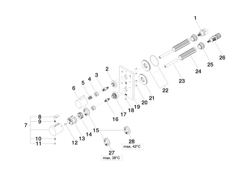 - 1 x UP-Thermostat mit Dreiwege-Mengenregulierung