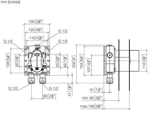 - 2 x Anschluss IG 1/2" (kalt/warm), DN 15