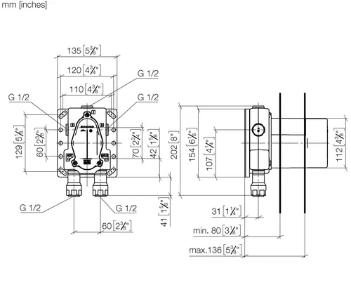 Dornbracht UP-Thermostat mit Vorabsperrung, Bausatz Vormontage